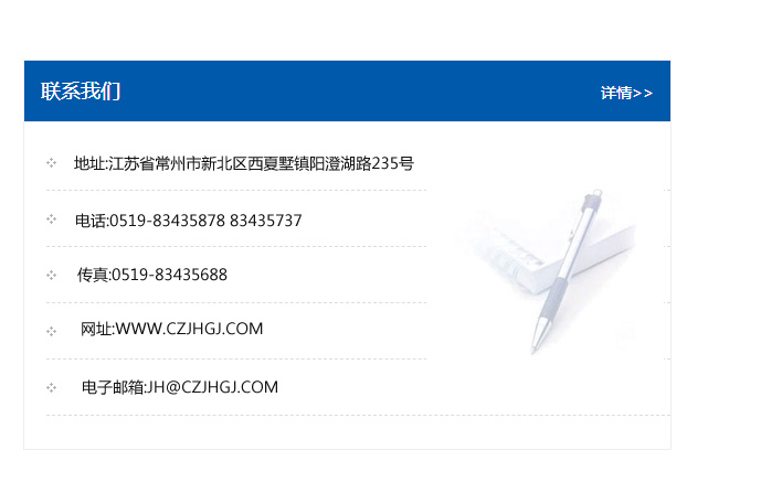 地址:常州市新北區友邦商務大廈1幢16、17層  電話:0519-85101652  傳真:0519-85112595  郵編:213022  網址:www.cz-jiayue_cn.jordanhn.com  郵箱:xiajifengaa@163.com